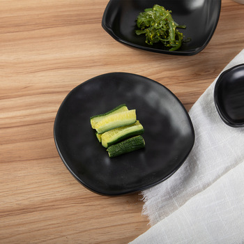 Japon tarzı 5.5 inç tek kullanımlık plastik atıştırma tabağı oteller için soğuk çanak pasta tabağı restoranlar siyah melamin parlatma